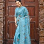 Elevate your style with this exquisite Pure Shiny Zari Chiffon Saree, featuring captivating cutwork and embroidery throughout its expanse. The saree boasts charming cross-stitch flower work meticulously spread across the fabric. It is gracefully teamed with a complementary blouse adorned with all-over buttis. This stunning and intricately detailed saree is available for β‚Ή4,899.00, promising a radiant and elegant look.